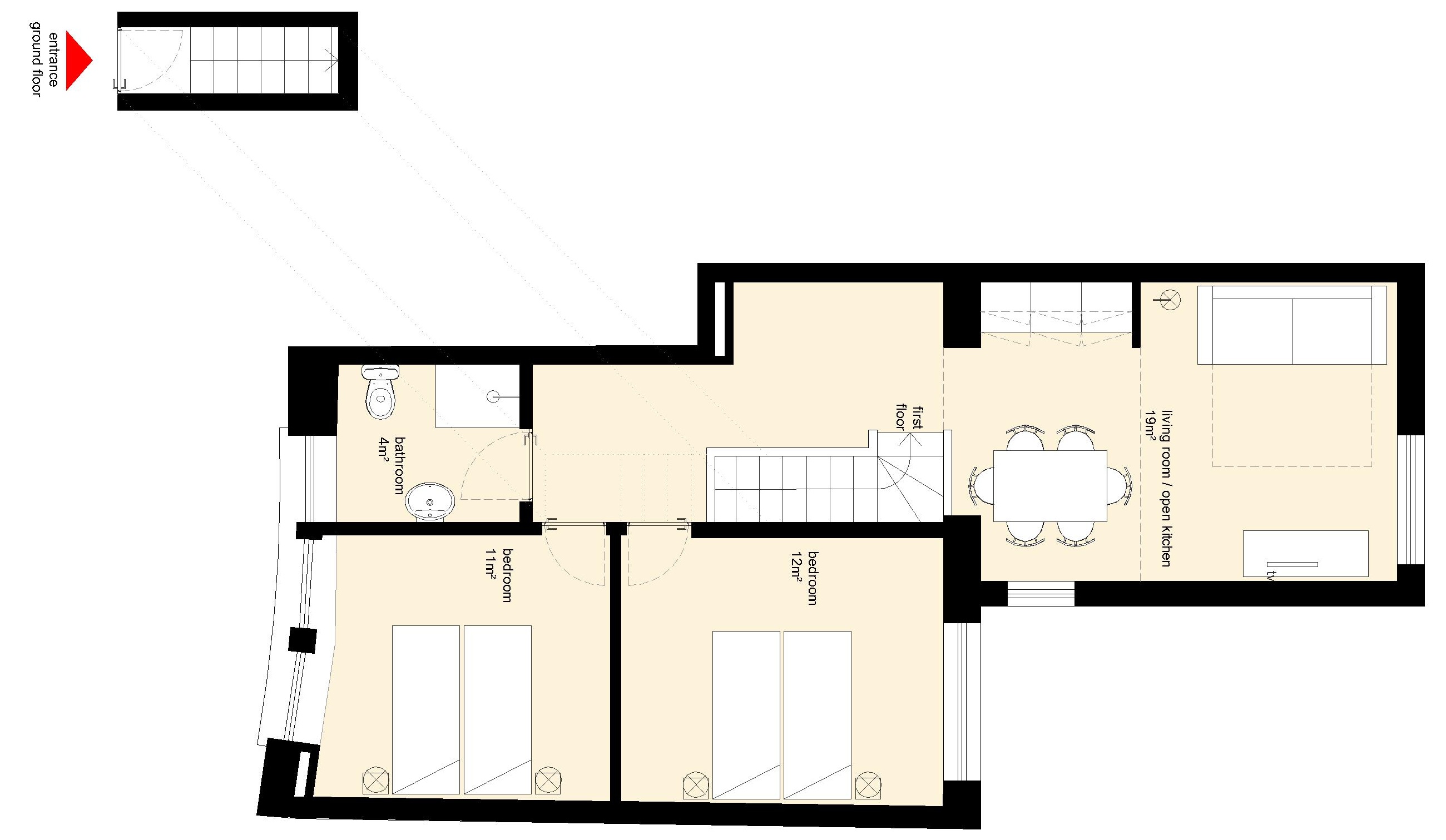 Localizado no 1º andar do edifício, integra dois quartos com duas camas de solteiro cada, sala com sofá-cama e TV, cozinha aberta para a sala de jantar e uma casa de banho com chuveiro.Facilidades: Internet ( Wi-Fi e cabo), ar condicionado, aquecimento, roupa de cama, toalhas e limpeza semanal.